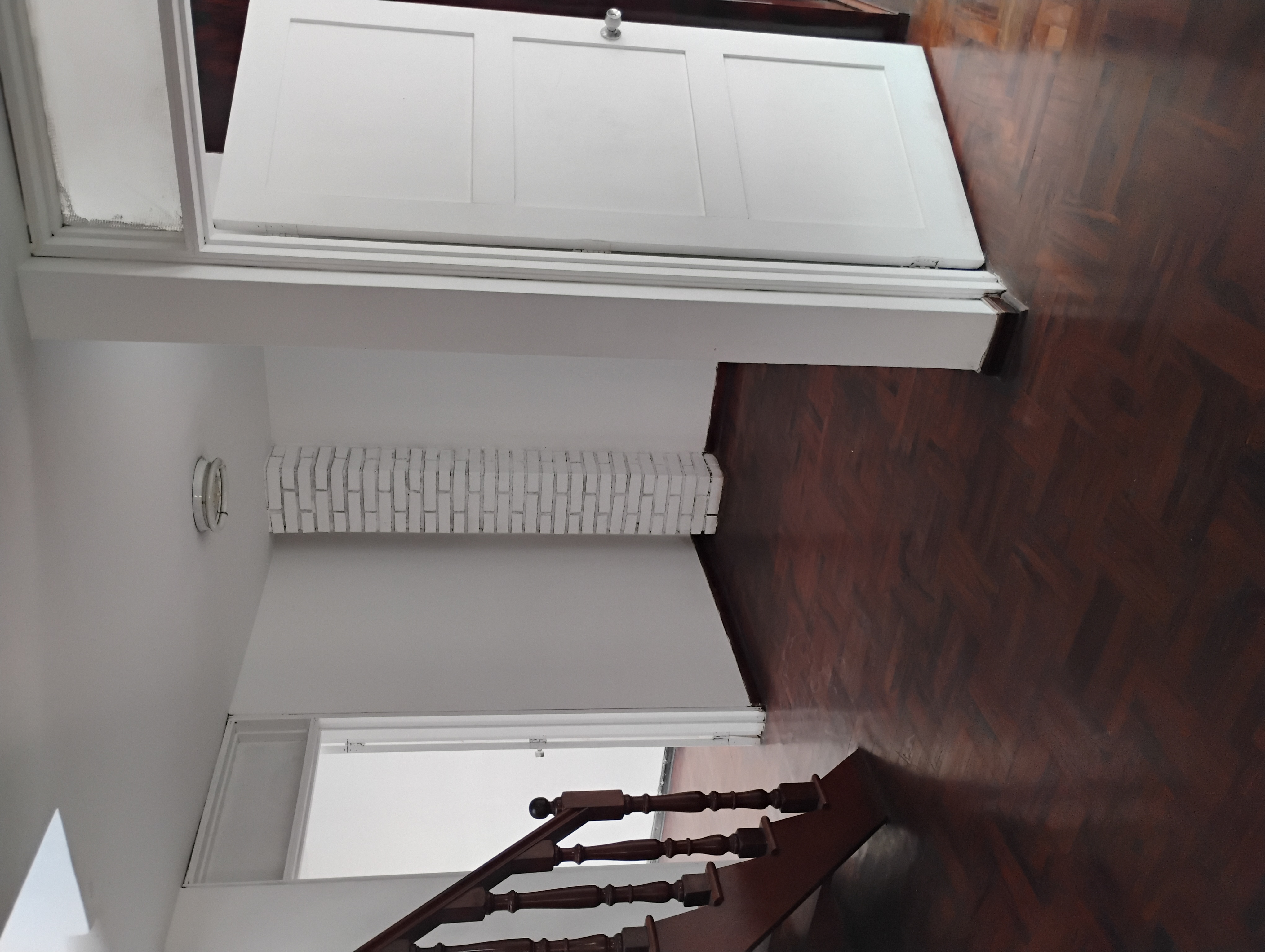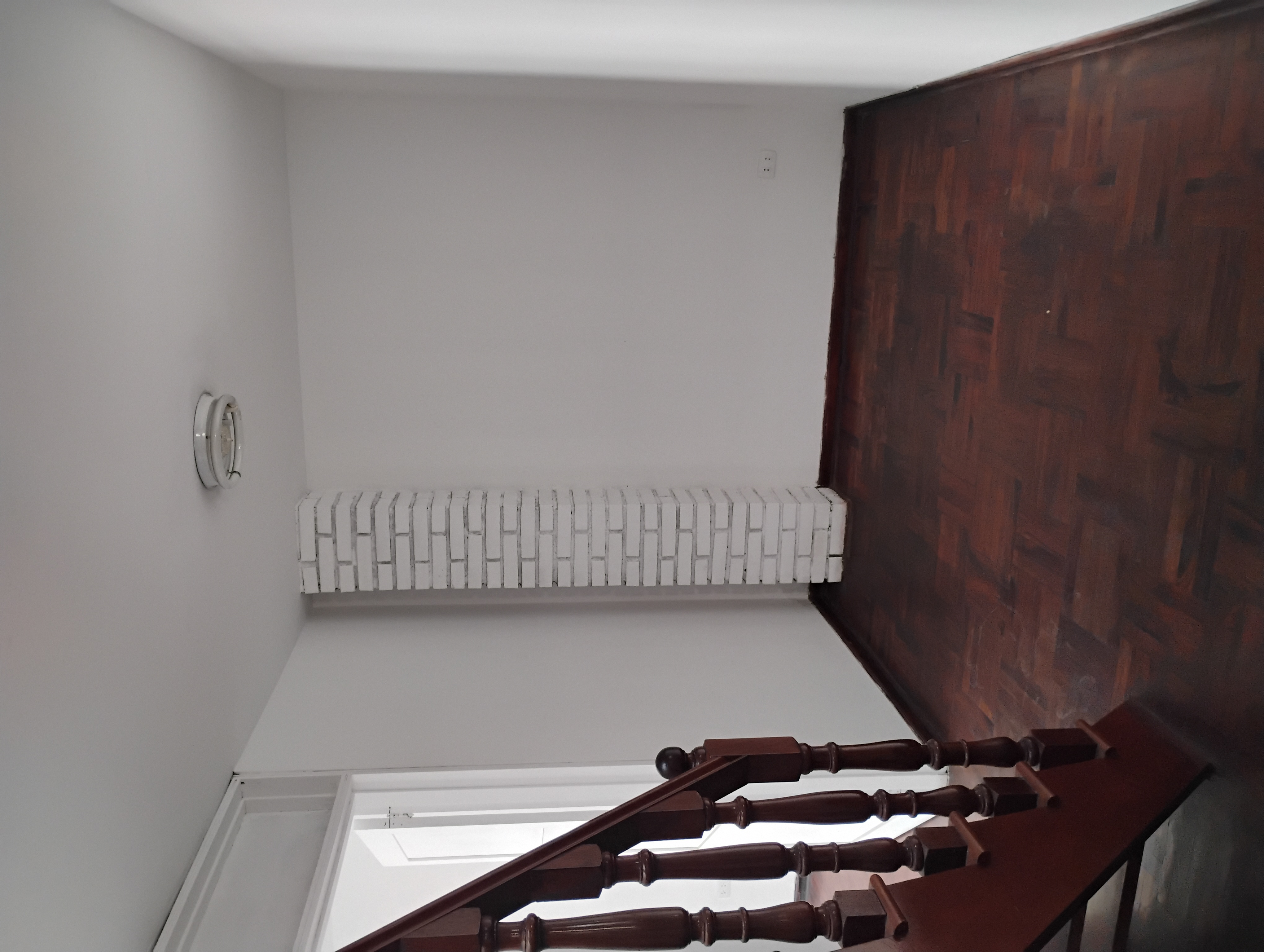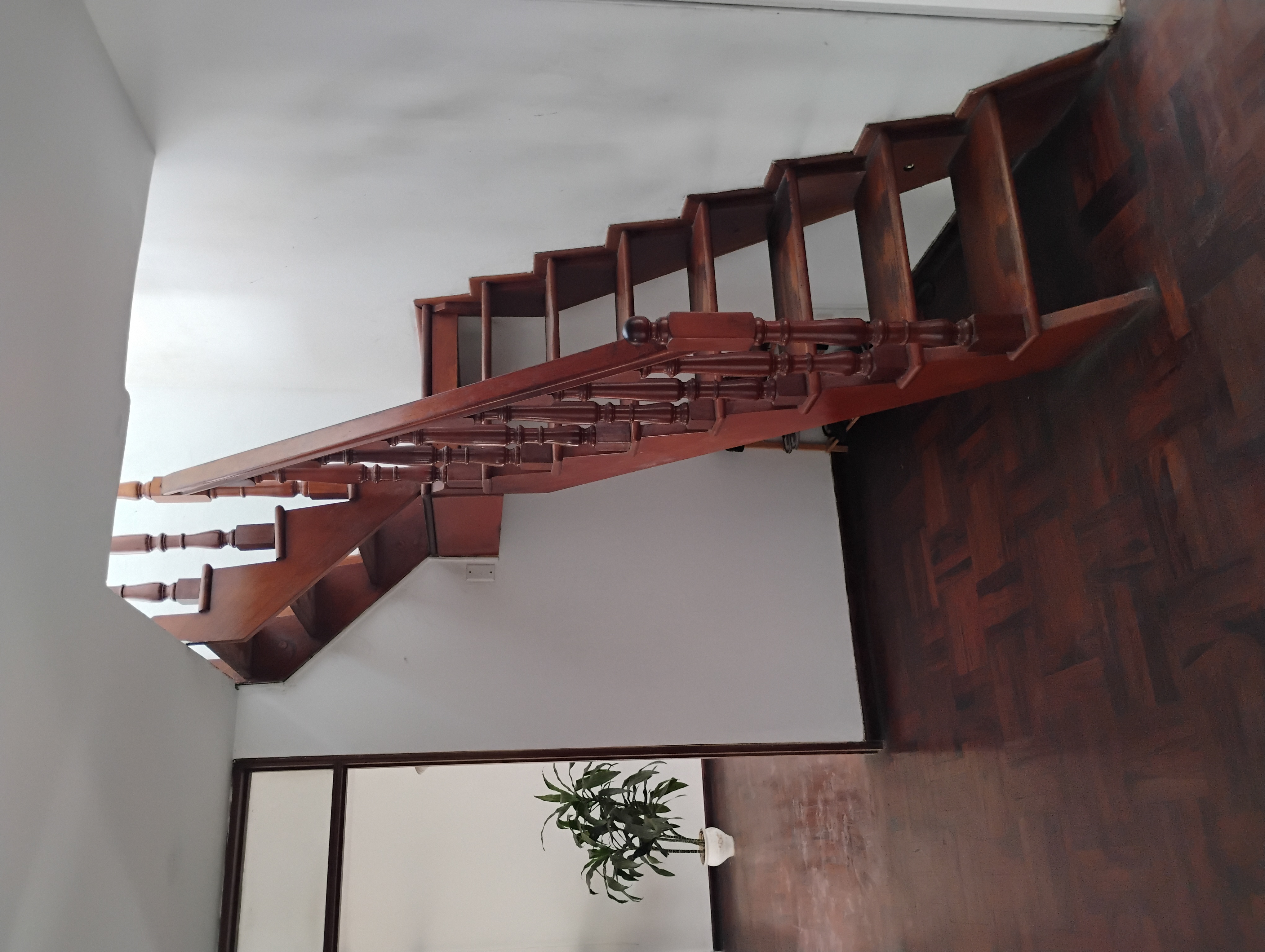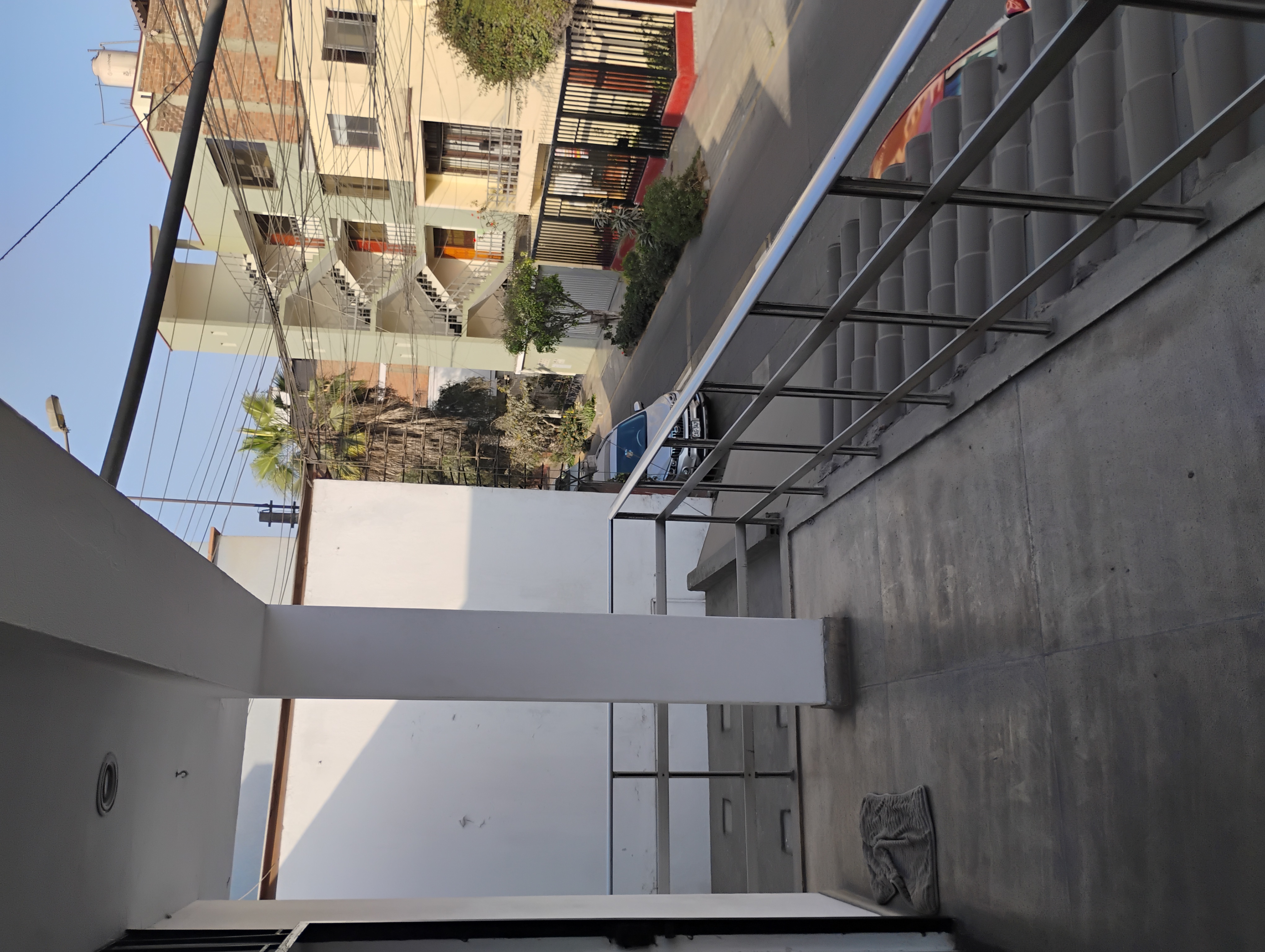 Una escalera con entrada independiente al duplex con intercomunicador.