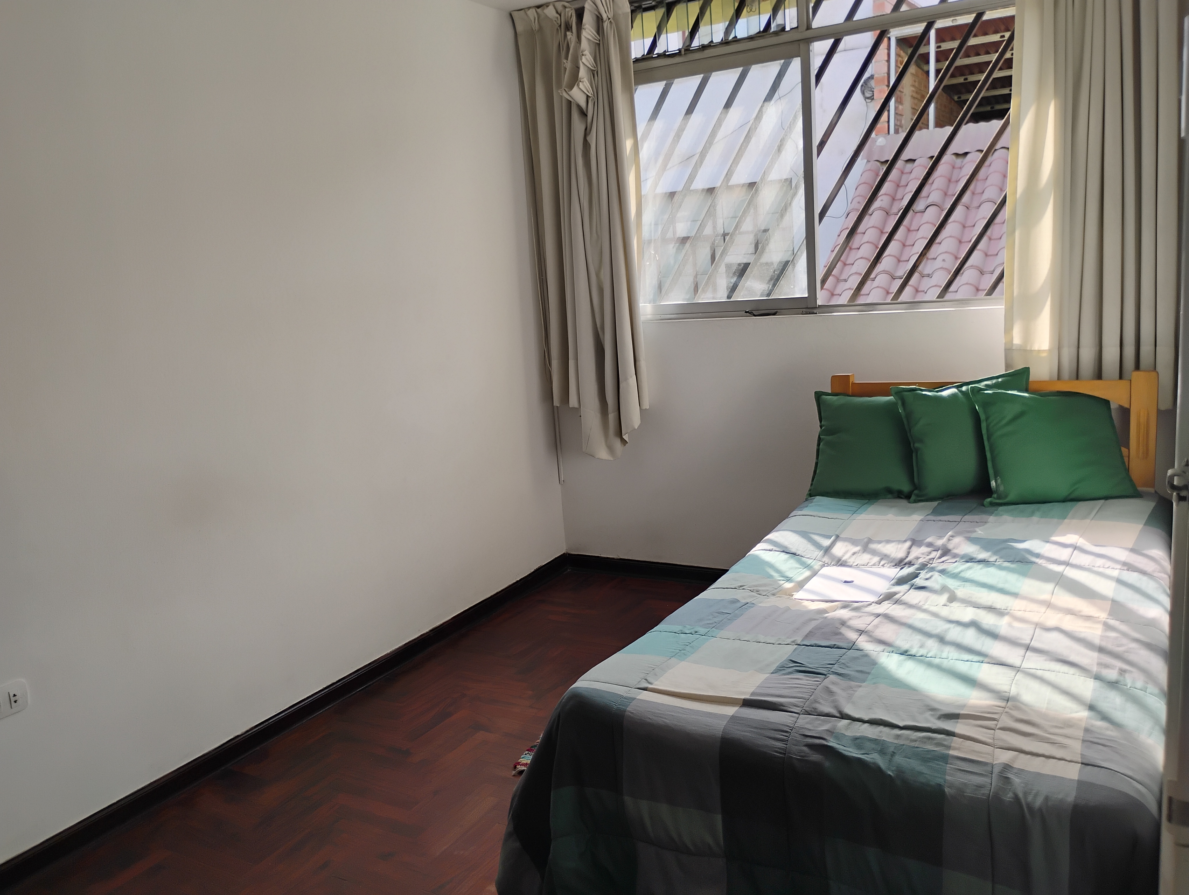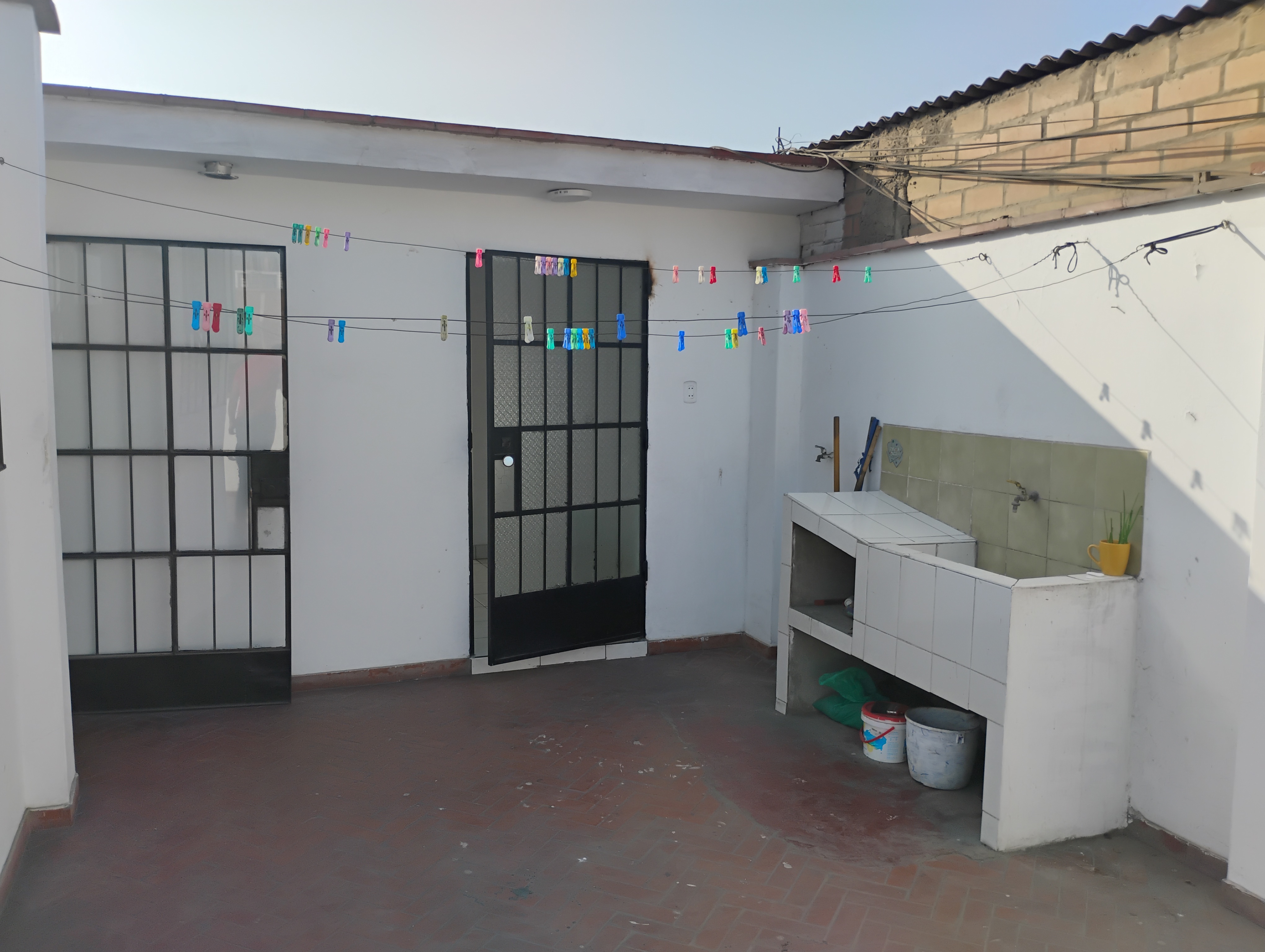 2 habitaciones, 1 con closet y la otra libre, 1 baño completo, 1 cuarto y baño de servicio, Lavandería, tendal, tanque elevado y una amplia terraza ideal para hacer parrillas en familia habilitar una piscina o las reuniones que desees con una vista maravillosa de la zona.