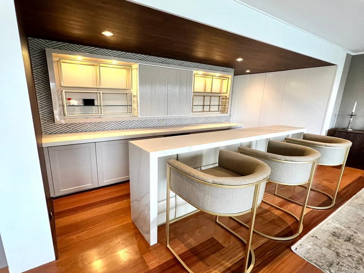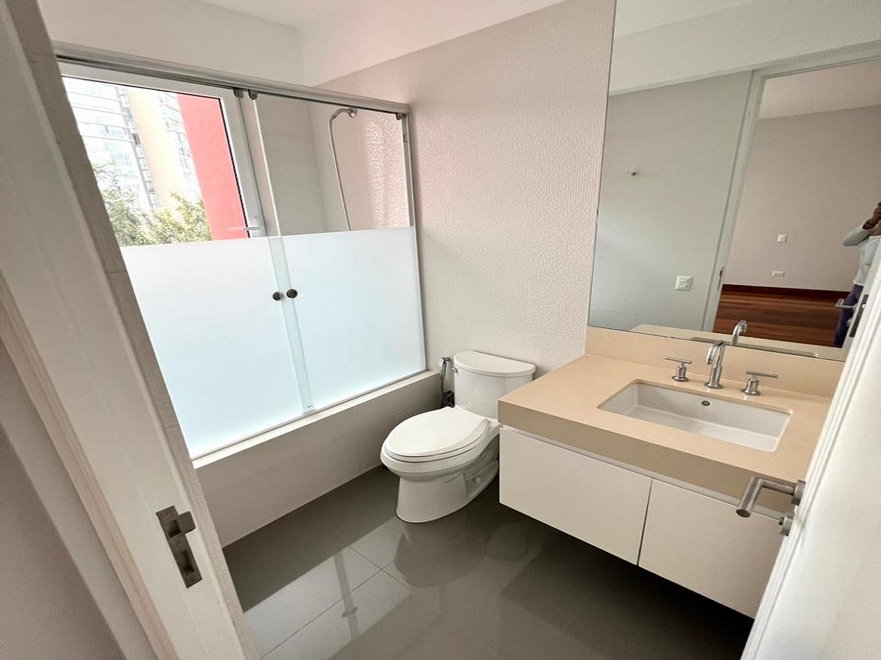 El Departamento consta de amplia SALA COMEDOR amoblada con sofás, sillones, mesa de centro, mesa de comedor con sillas para 8 personas y equipada con ventanas de doble acristalamiento vista exterior verde arbolada, cortinas roller, muebles de diseño, Cine con proyector y sonido surround system con Ecran retráctil y Aire acondicionado centralizado + Bar con mueble de diseño, mesa, sillas elevadas y closet con puertas de diseño para guardar vajilla + 1/2 Baño de Visita + Sala de Estar-TV con sofá y mueble de diseño + 3 Dormitorios amplios todos con Baños privados: