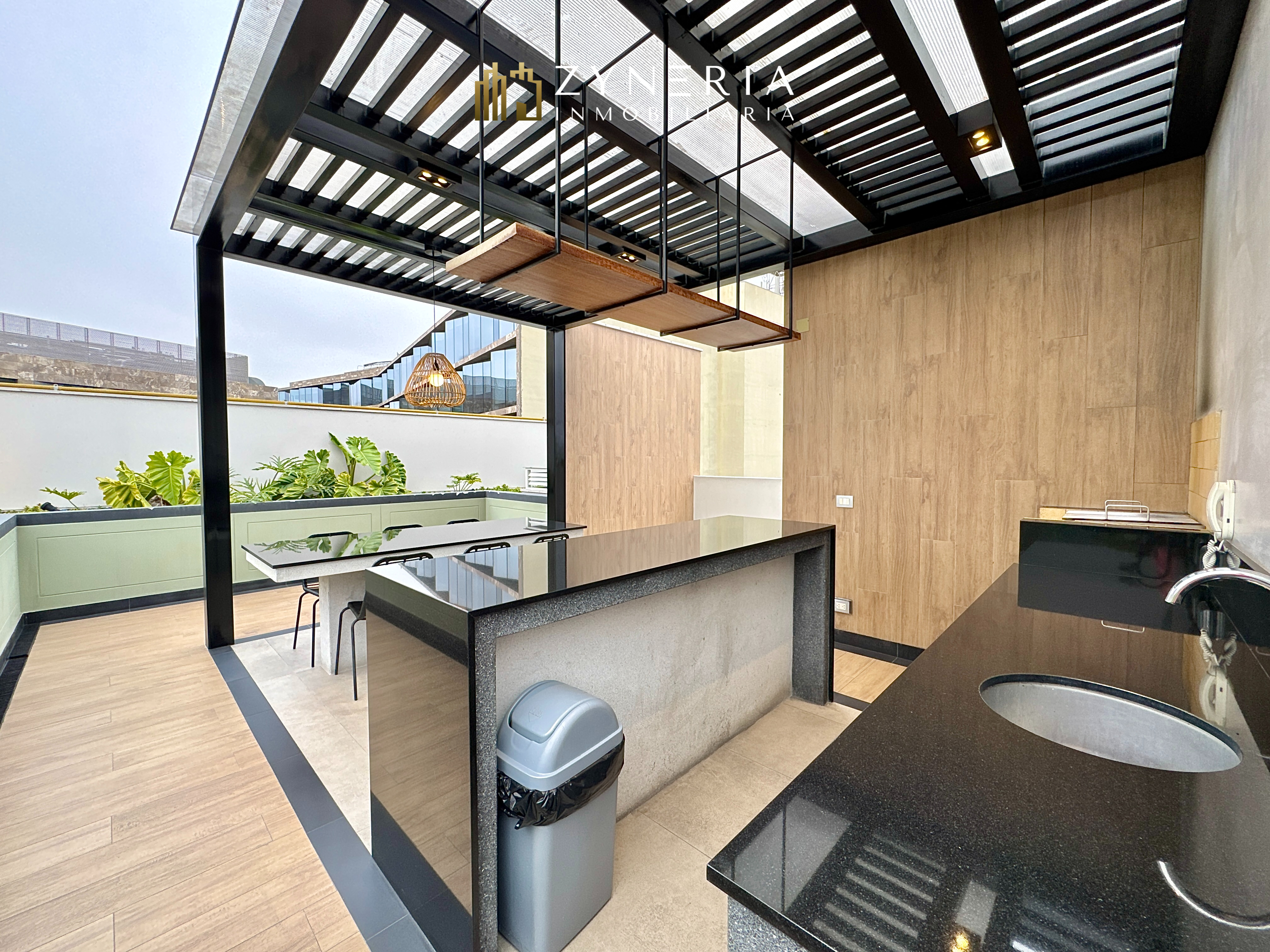 Alquiler ideal para ejecutivos o parejas. Se ofrece un mini departamento de 42 m² en la Calle Los Pinos, en una ubicación estratégica al lado del Hyatt Centric San Isidro. Este apartamento es perfecto para quienes buscan vivir a un paso del Centro Empresarial Real de San Isidro, con acceso inmediato a los mejores restaurantes y oficinas, y a corta distancia del exclusivo Parque El Olivar y Camino Real.