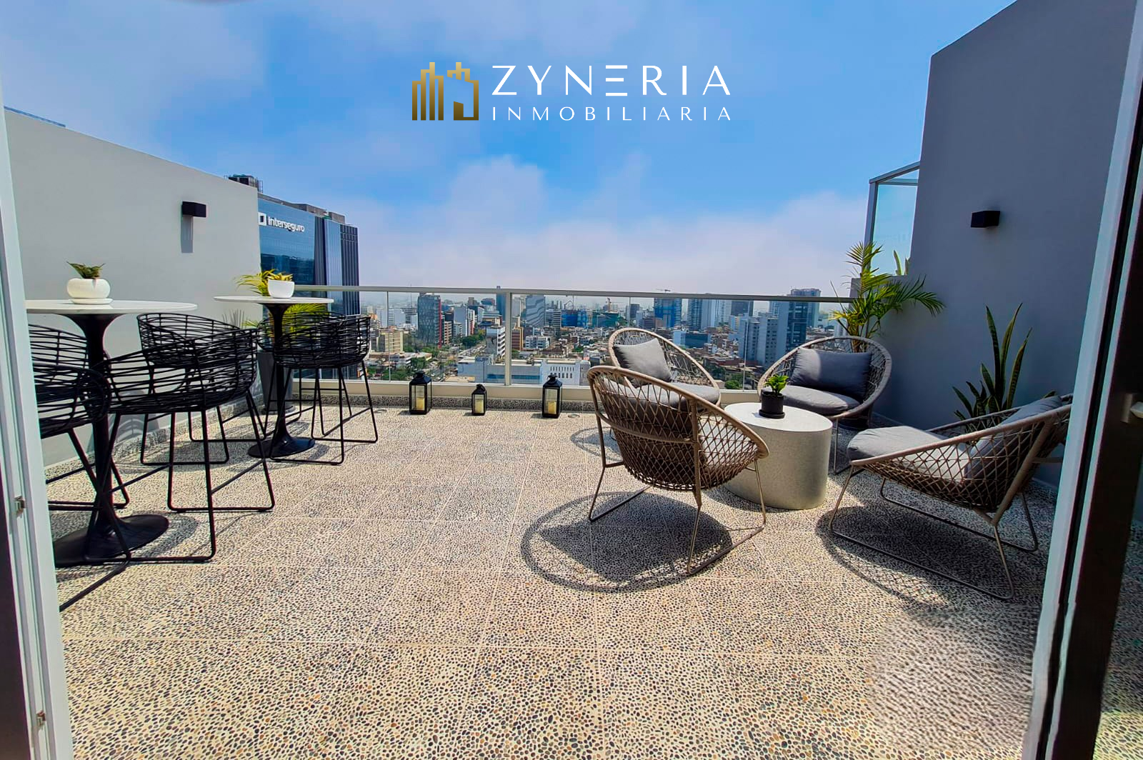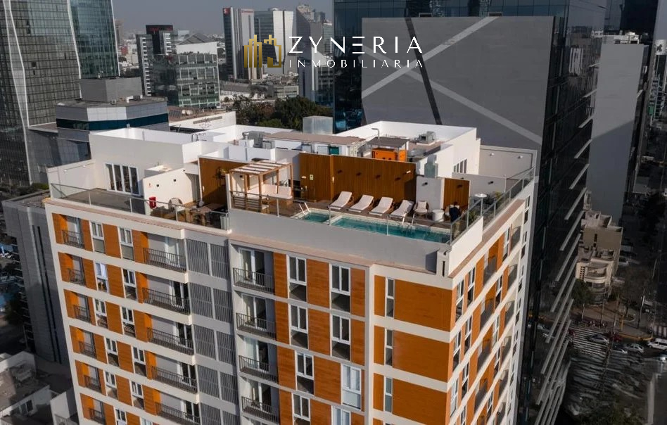 Alquila este moderno mini departamento sin amoblar de 46 m², con solo 2 años de antigüedad, ubicado estratégicamente en Lince (cruce de Av. Rivera Navarrete con Los Geranios), literalmente a una cuadra del corazón financiero de San Isidro.