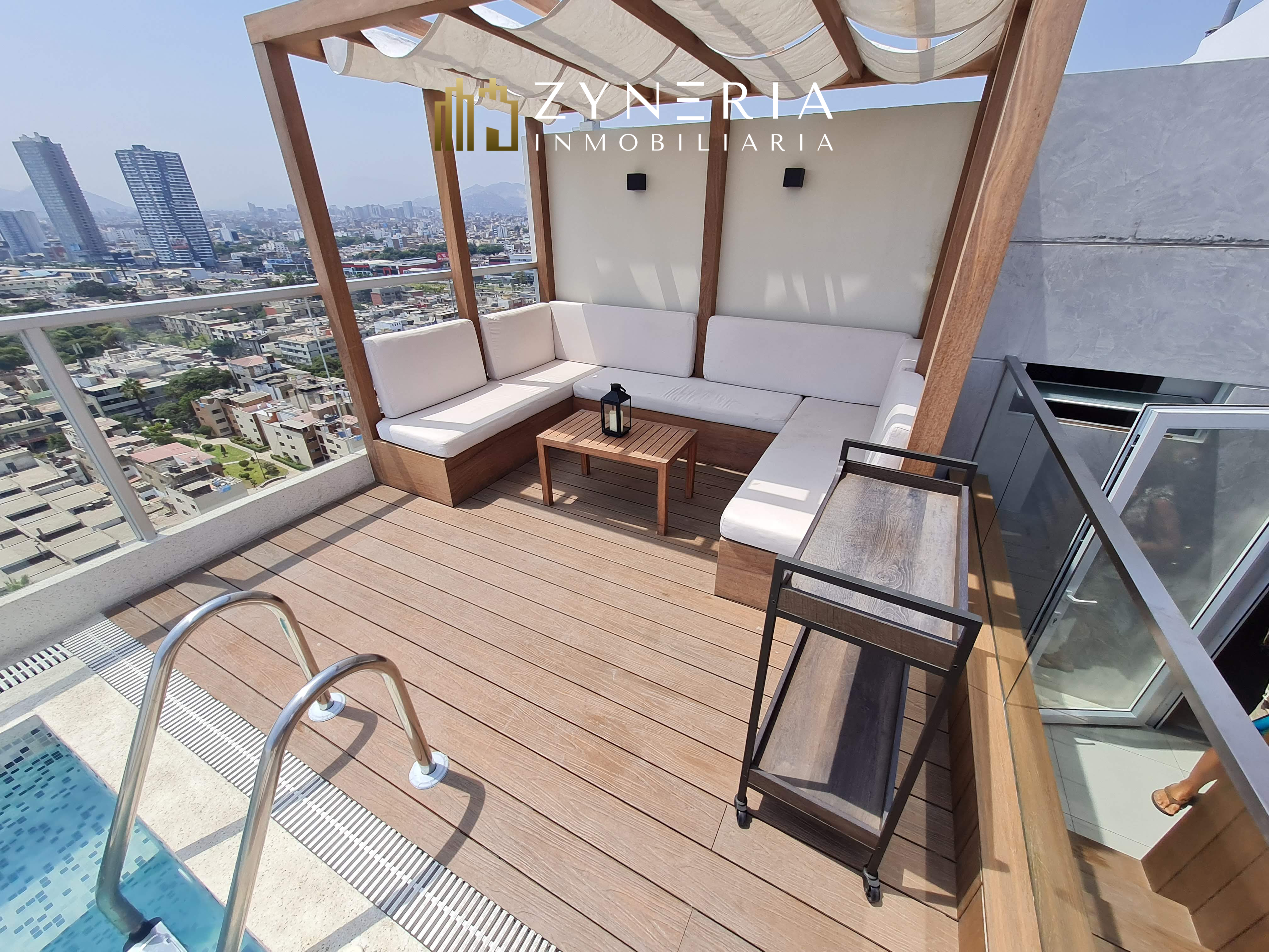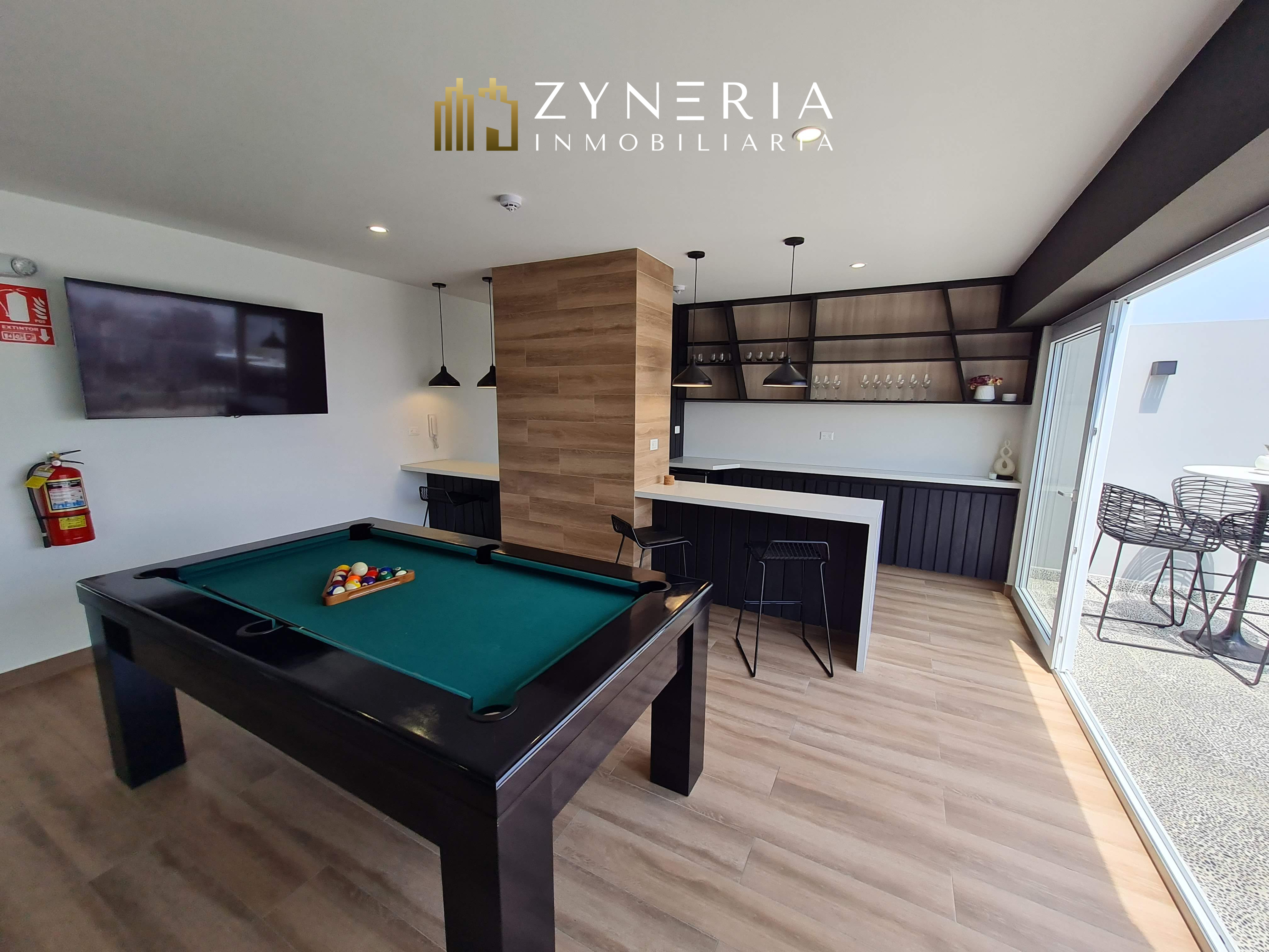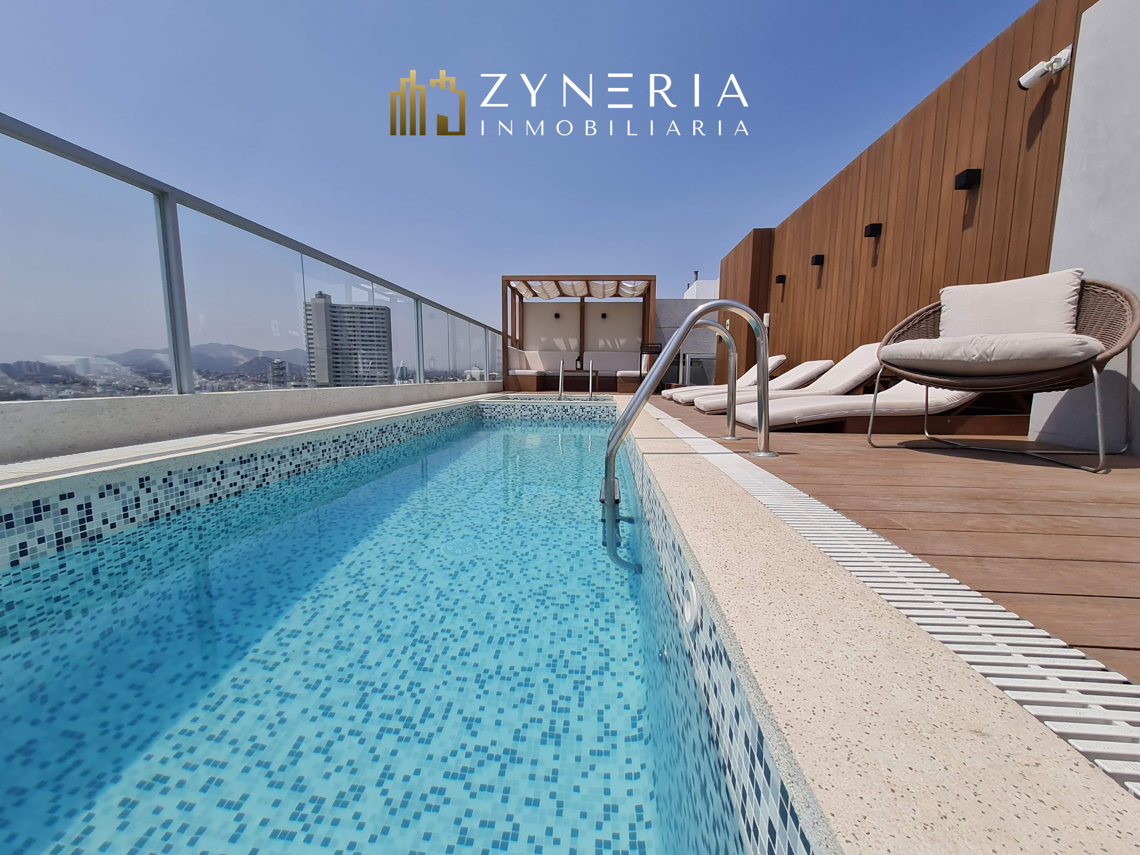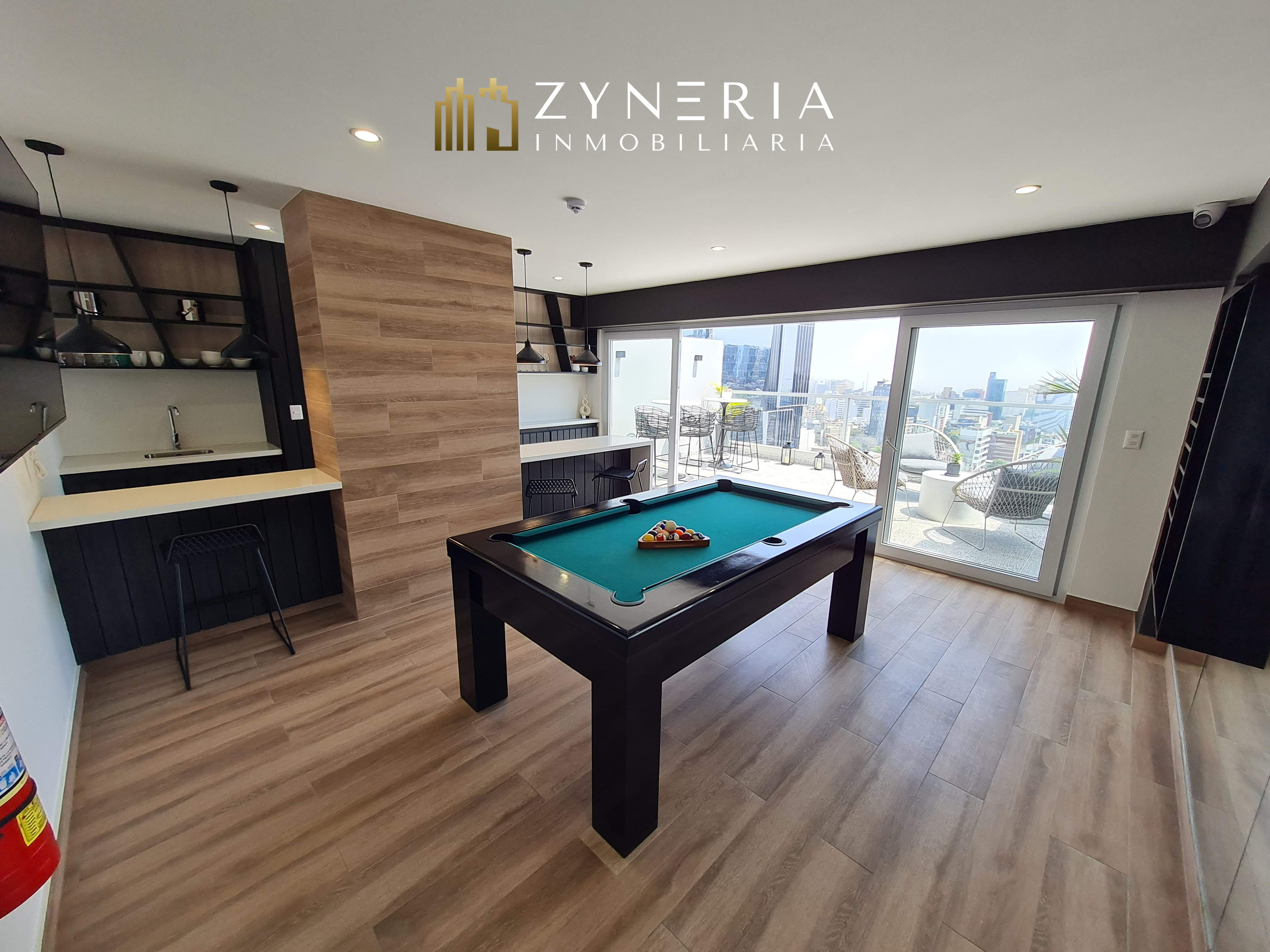 -Rooftop (Último Piso): Disfruta de vistas panorámicas desde la piscina, relájate en la amplia terraza, organiza reuniones en la zona de parrilla y horno, mantente en forma en el gimnasio equipado o diviértete en la Sala Bar con mesa de billas.