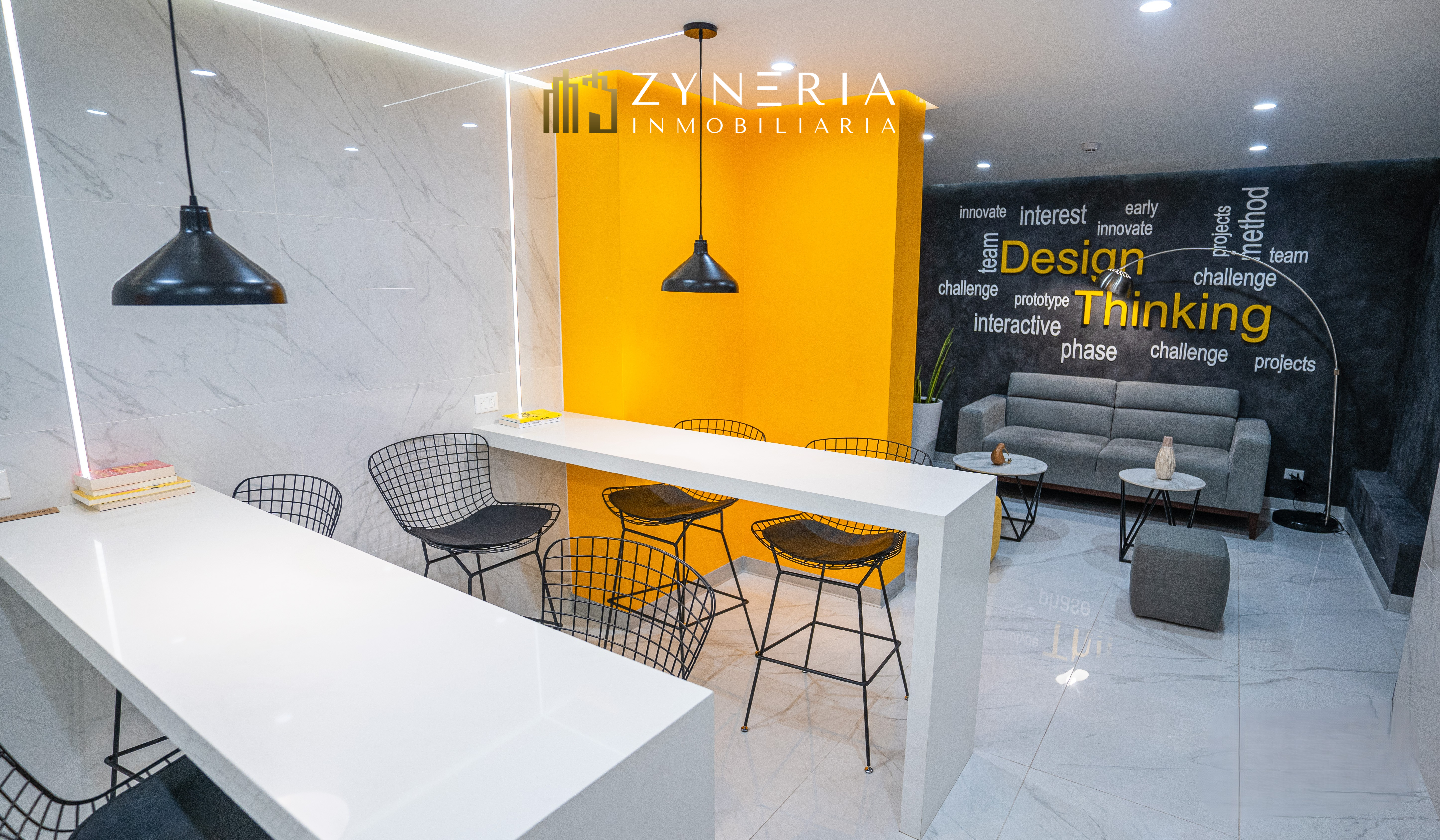 -Primer Piso: Elegante lobby, recepción con portería, conserjería y seguridad 24/7, y una moderna sala de Coworking.